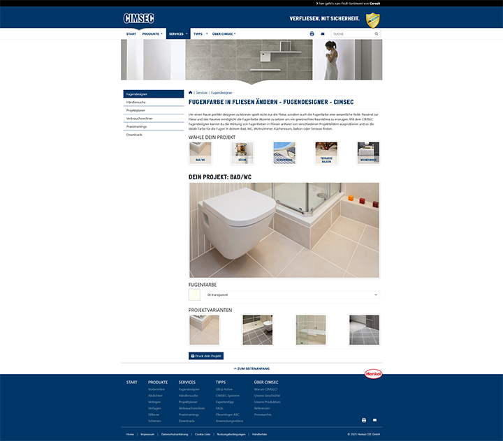 Um Kunden die Auswahl und Planung ihrer Fliesenprojekte zu erleichtern, hat CIMSEC speziell entwickelte digitale Tools in seine Website integriert. Der individuell entwickelte Fugendesigner hilft bei der Wahl der passenden Fugenfarbe und ermöglicht eine realistische Visualisierung der Fliesenoptik. Der mit der Produktentwicklungsabteilung von Henkel entwickelte Projektplaner erstellt basierend auf den Projektparametern eine maßgeschneiderte Produktauswahl, während der speziell für den Kunden entwickelte Verbrauchsrechner die optimale Stückzahl der benötigten Materialien für eine ideale Umsetzung berechnet. Diese Tools unterstützen Kunden nicht nur bei der Planung, sondern reduzieren auch Materialverluste und Kosten.