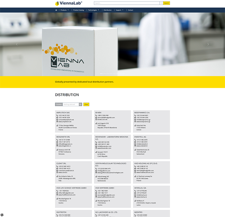 ViennaLab-Produkte sind weltweit über ein etabliertes Netzwerk von Distributoren und Partnern erhältlich. Die Website bietet eine umfassende Übersicht zu den Vertriebspartnern und ermöglicht eine einfache Kontaktaufnahme für Kunden aus unterschiedlichen Regionen.